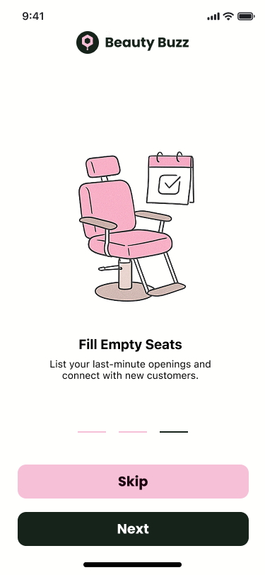 We share your salon’s open availability and put it directly in front of beauty lovers who are ready to book. Discover open appointments near you—or fill your calendar fast. Beauty Buzz connects shoppers and pros in real time.